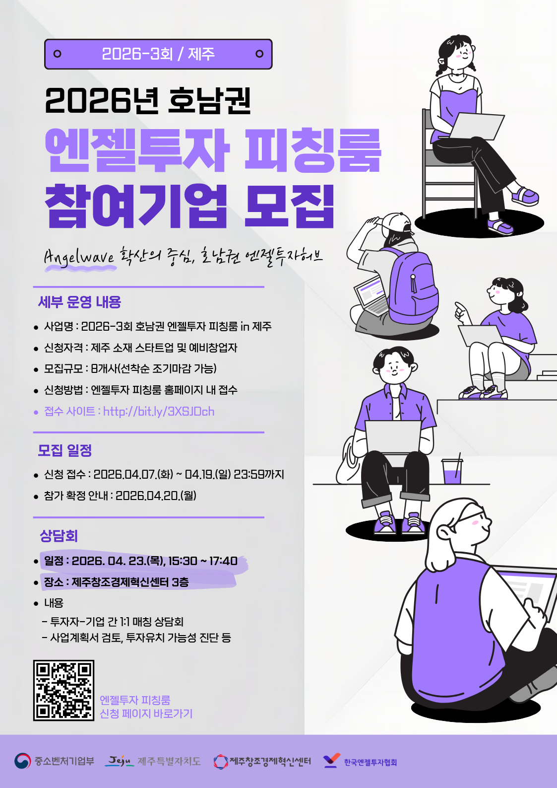 * 상담회 : 26. 4. 23(목) 제주창조경제혁신센터 3층(제주 제주시 이도이동 중앙로 217)